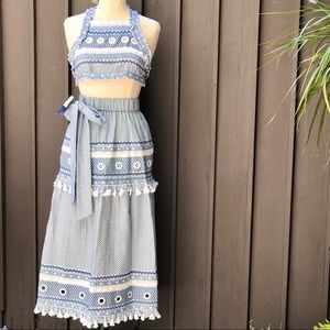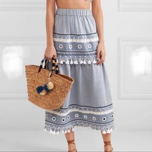 Dodo Bar Or's top and skirt set is perfect for showing off sun-kissed skin and works just as beautifully in the city as it does on an island getaway. Cut from airy cotton-jacquard, this set is woven in a houndstooth pattern and decorated with signature tassels, eyelets and rickrack embroidery. New with tags.