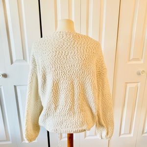 This is a beautiful and super soft Anthropologie Ruby Moon white sweater with interwoven golden thread. So cute and flattering. Size XL