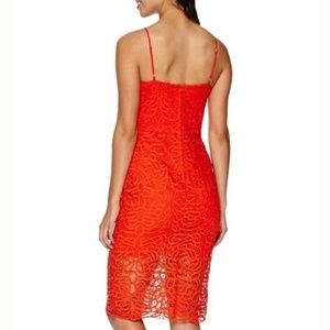 Beautiful, sexy (adjustable) spaghetti strap dark orange lace dress with a mini underlay in same color. Illusion banding around the waist for that bodycon shape to hug your body perfectly!! Fantastic choice for a night out or a first date!