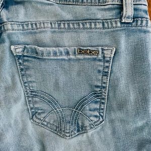SOLD IN BUNDLE - BEBE DISTRESSED JEANS & WHITE BODYCON SHIRT