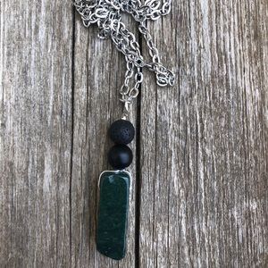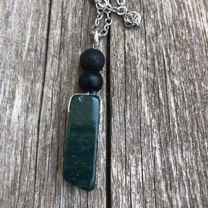 Jasper and black onyx with lava bead. Feel peaceful and calm even when your surroundings are not. Be strong minded, calm of heart, and fierce of spirit. Black onyx to keep you on your tranquil path and lava for grounding.