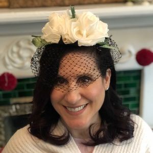 Flower and black net vintage headpiece from the 50s. Requires a Bobby pin to be secured onto your head!