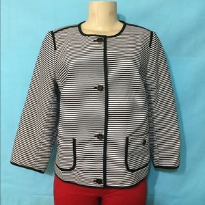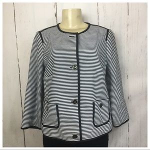 Talbots Black/White Petite Striped Blazer Sz 12WP