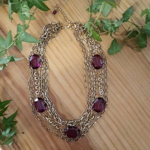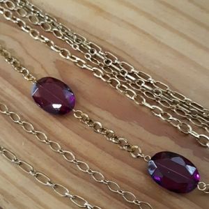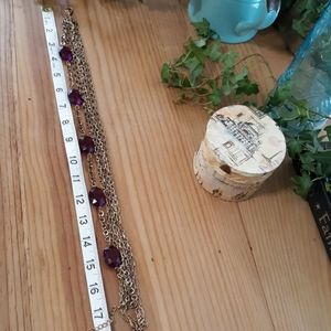 So pretty! Gold chain necklace with magenta-ish/purple beads! This necklace could be worn at the office or with jeans & a jacket!! Necklace is 17.5 inches with a 3 inch extender. No known flaws! Bundle with another item for a bundle discount!!