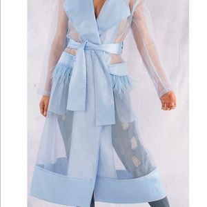 Long sheer Jacket w/belt and fringe pockets also plus sizes available