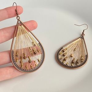 Keywords: bohemian, charm, tassel, dangle drop, statement, summer, bright, long, fabric, hoop, circle, round, thread