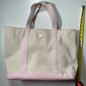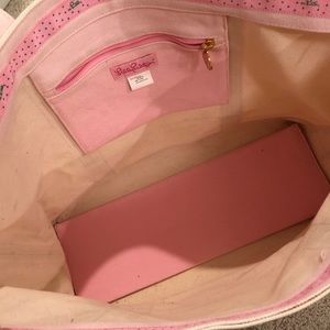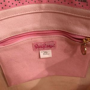 Lilly Pulitzer canvas tote bag. Cream and pink colored. Large tote bag, in good condition & gently used. Has one zipper pocket inside.