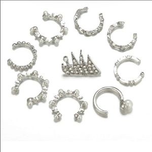 9 Pc. Faux Pearl + Crystal Ear Cuff + Stud Set