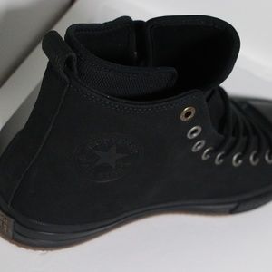 Pair of Unisex Converse Nubuck Leather Black on Black Counter Climate Waterproof Chuck Taylor All Star High Top Boots With Lunarlon.