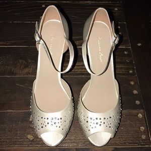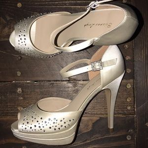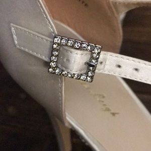 New without tags. Gorgeous bridal shoes (or any occasion). Rhinestone detailed ankle strap and toes, no stones missing. Size 8 Women’s, true to size. Smoke free home