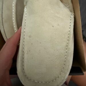 Very gently used Ugg’s ascot. Nice cream/white suede with plush ugg lining. I’ve used these to wear around the house a handful of times. Comes with box!