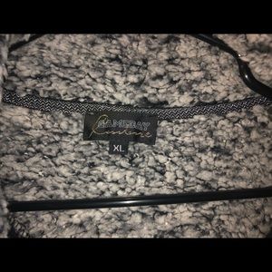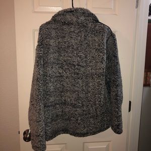 Gray and black Sherpa jacket with a thin red line heart. Never worn.