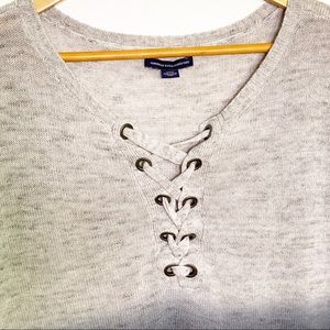 Ombré Oversize Knit Sweater AEO has some wear on the right sleeve as photographed above.