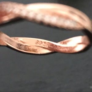 Rose Gold Over Sterling Silver Double twist band Lab Made Solitaire Diamond Ring with lab diamond accents on band.