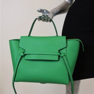 Celine Mini Belt Bag Green Grained Calfskin Leather Satchel Shoulder Bag -