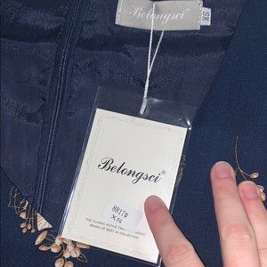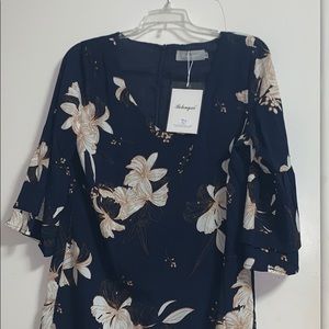 Brand new navy Belongsci flower dress. Is above the knee depending on height. Zipper in the back. Bell sleeve.