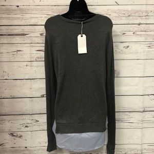 Gray faux dress shirt crew neck tunic sweater