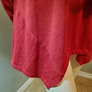 Style & Co crew neck, tunic style, cold-shoulder glittery top in red. Poly / Rayon blend,