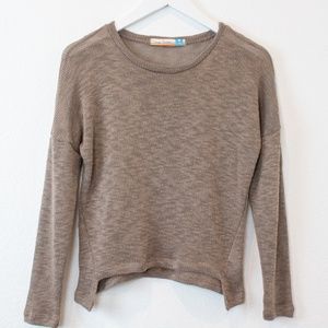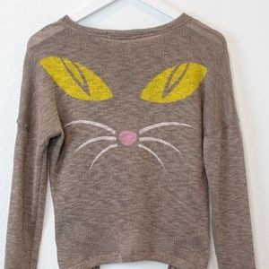 VINTAGE HAVANA Cute Cropped Cat Sweater Size M, loose weave, tan with cat detail on back of sweater