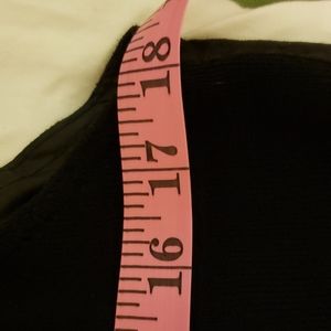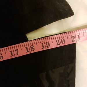 Suede vest. Suede on front, acrylic sweater like in back. Snap front, 2 vest pockets. Sz Large. Pit to pit is over 18". Back from under the collar down is approx. 18". Front from shoulder to point is approx. 22" down. Very good condition