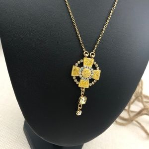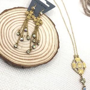 Gorgeous matching set of long dangle earrings and necklace. Features a beautiful cross enamel with sparkling crystals! Hand made with hypoallergenic materials in Denmark, with love and care. Made by Pilgrim a very popular brand in Europe and high-end department stores.