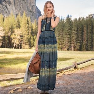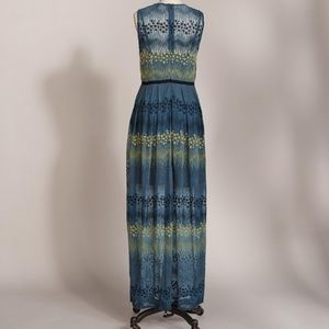 Beautiful Starlight skies maxi dress features ribbon overlays and delightful all over embroidery. Dress comes with slip.