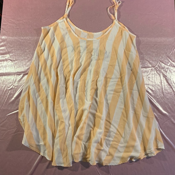 cute, versatile and amazingly soft sheer tank, dress or swim coverup from wildfox in the amazing peach and white Hotel Stripe. ive had this a long time and only wore it maybe twice. love it so much! in great used condition. wildfox size large