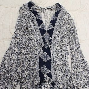 Lulu's Many Moons Ivory and Navy Blue Floral