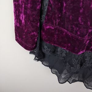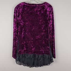 Cute and unique velvety style pullover sweater with lace trim.