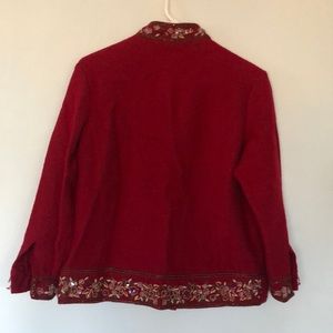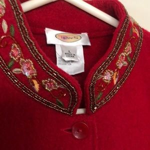 Talbots Red 100% Wool Beaded Jacket Blazer Lg Beautiful Holiday Party Perfect