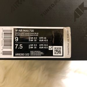 NIB Women’s Nike Air Max 720 in White/light Aqua-Chalk Blue. Size 9. New in box (no lid).
