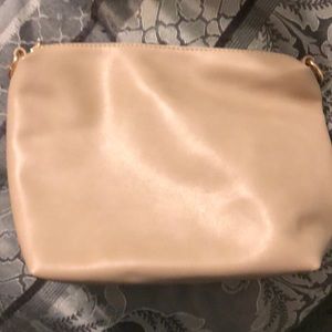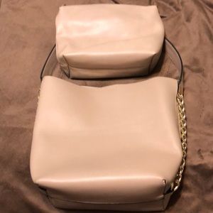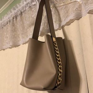 Medium tote with gold chain accent and matching make up bag has magnetic closure in mint condition