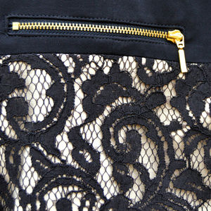 ◇ The pieced design brings together lace, ponte fabric and faux-leather for a uniquely modern look
