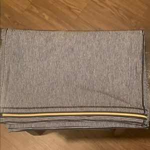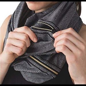 Grey and black stripe scarf by lululemon with a unique gold zipper. Can be worn many ways! In excellent, flawless condition