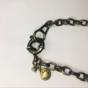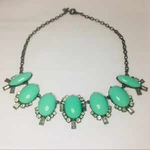 J. Crew Statement Necklace. Pre-loved. Has slight discoloration on clasp, not visible while wearing. Measures 20” long and 1.5” at widest. Antique gold and turquoise colored.