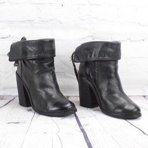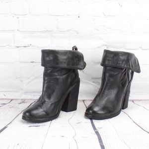 Kensie Black Leather Block Heel Ankle Boots Size 7