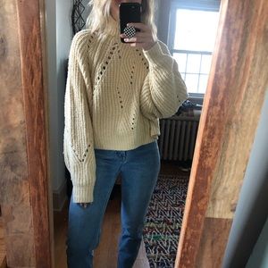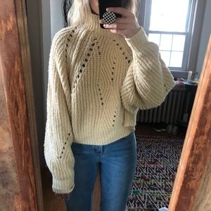 Timbers turtle neck sweater from Free People. Color is like a very light yellow. Never been worn before, size xs but can also fit a small!