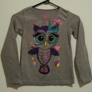 Garanimals long sleeve with an adorable owl with gorgeous eyelashes, wearing a bow. Hearts and some glitter.