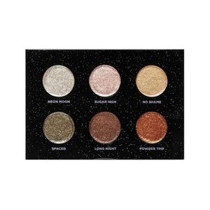 Each shade is laced with micro-fine sparkle and lush 3D metallic glitter for a luxe, diamond-like effect. Rose-hued shades like Sugar High and Long Night create a subtle flush, while the silver and gold metallics of Neon Moon and No Shame add an icy pop to inner corners.