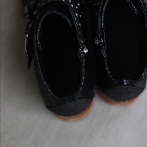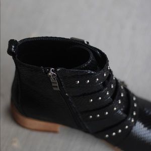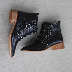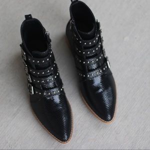 Fit true to size. Beautiful brand new faux black snakeskin booties. Box included