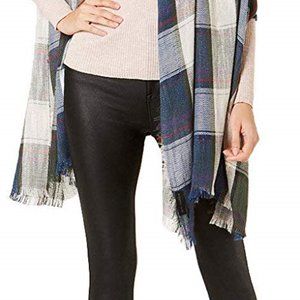 Steve Madden Check Made Plaid Travel Scarf & Wrap (Navy)