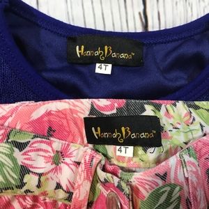 Hannah Banana pink multi floral printed jeans with blue and pink sweater with flower appliqué heart at Chest. Both size 4. Worn once.