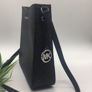 Michael Kors Jet Travel LARGE Messenger Michael Kors large LG Jet Set Travel messenger, purse , handbag, bag, crossbody , x-body . Black . Top closureAdjustable leather strap with 22' - 26" dropSlip pocket on the back with magnetic snap Silver tone hardwareInterior 4 slip pockets and 1 zipper pocket10" L x 10" H x 3" D