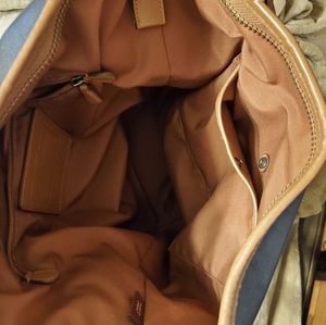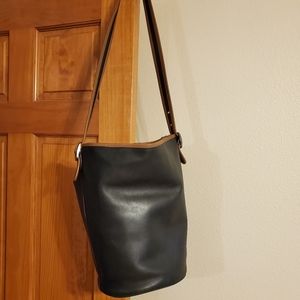 Coach limited edition crossbody. Bag has a adjustable strap and can be worn as a crossbody. Color is black with brown trim so its super versatile. Purse has 2 inside pockets, one that zips and one that snaps. Also has a snap loop at the top for keeping track of those pesky keys! Feel free to ask questions should you have any. The oval bottom is 7 in by 8 in it is 14 and a half across at the top and 14 in tall