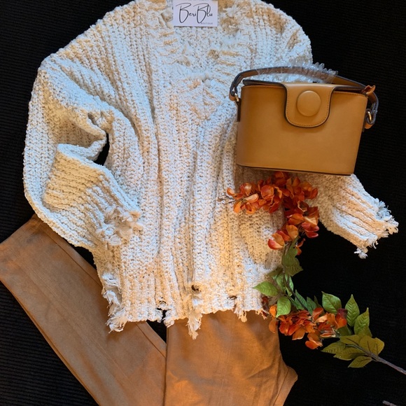🌺 1 Left Small 🌺Ivory Frayed Relaxed Fit Sweater