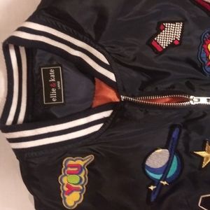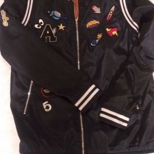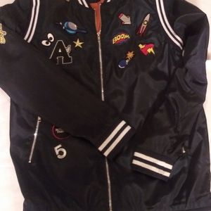 Navy Blue Jacket with patches throughout. "Great look with Jeans".