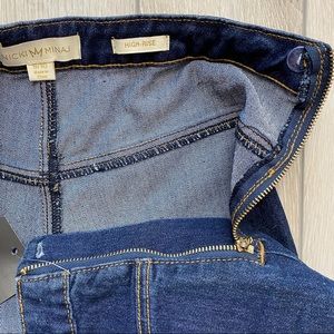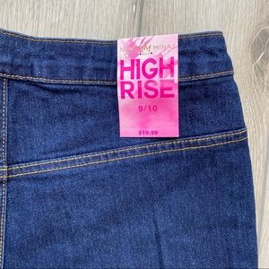 These shorts are by Nicki Minaj for K-mart. New with Tags. They are a dark wash with exposed side zipper closure. These shorts do not have pockets.