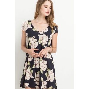 Navy short sleeve floral dress with pockets