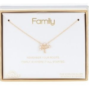 Family Tree Gold over real Sterling Silver necklace charm crystals stones. Dainty and adorable! Perfect for a mother's day, birthday, valentine's, Christmas gift!