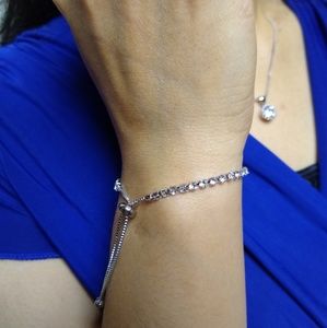 Beautiful white cubic zirconia adjustable tennis bracelet. Material cubic zirconia, copper